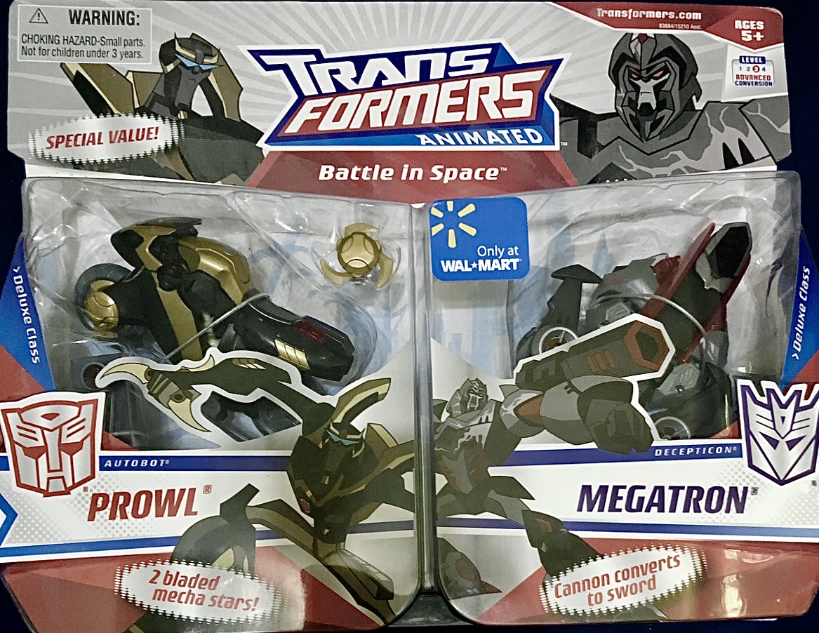 | Battle in Space | Black Friday Walmart exclusive 2-pack of Deluxe Class Megatron form the "The Battle Beigns" set and a regular deluxe class Prowl unchanged from his individual release. | Animated | 2008 |