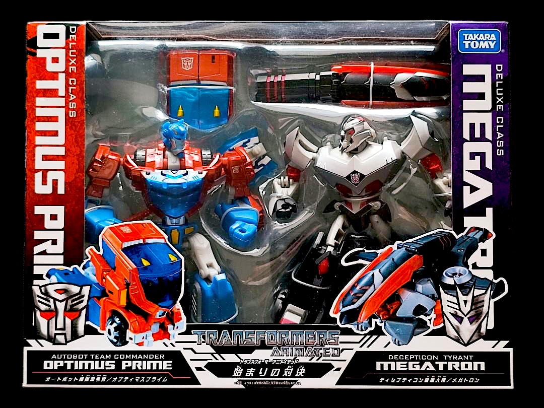 | Optimus Prime vs Megatron The Battle Begins. | 2-pack of the titular deluxe class figures with extra battle damage and a DVD that features the first episode of the Transformers: Animated TV show | Animated | 2008 |