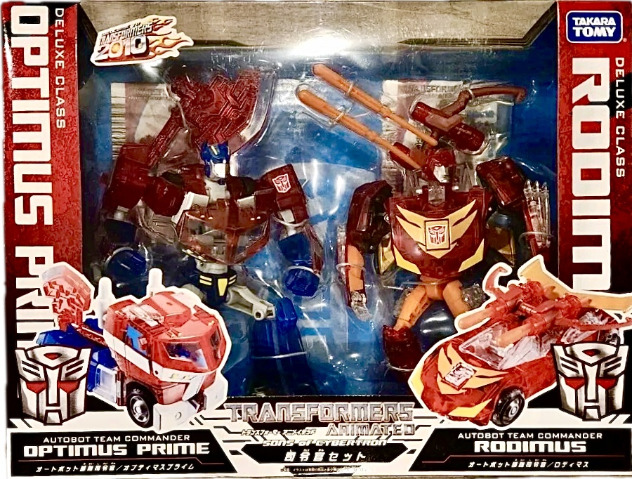 Description: Takara's other Son's of Cybertron set featuring the Animated versions of Optimus Prime and Rodimus. Done in translucent plastic like the other set. Available later at Shagai-Con.